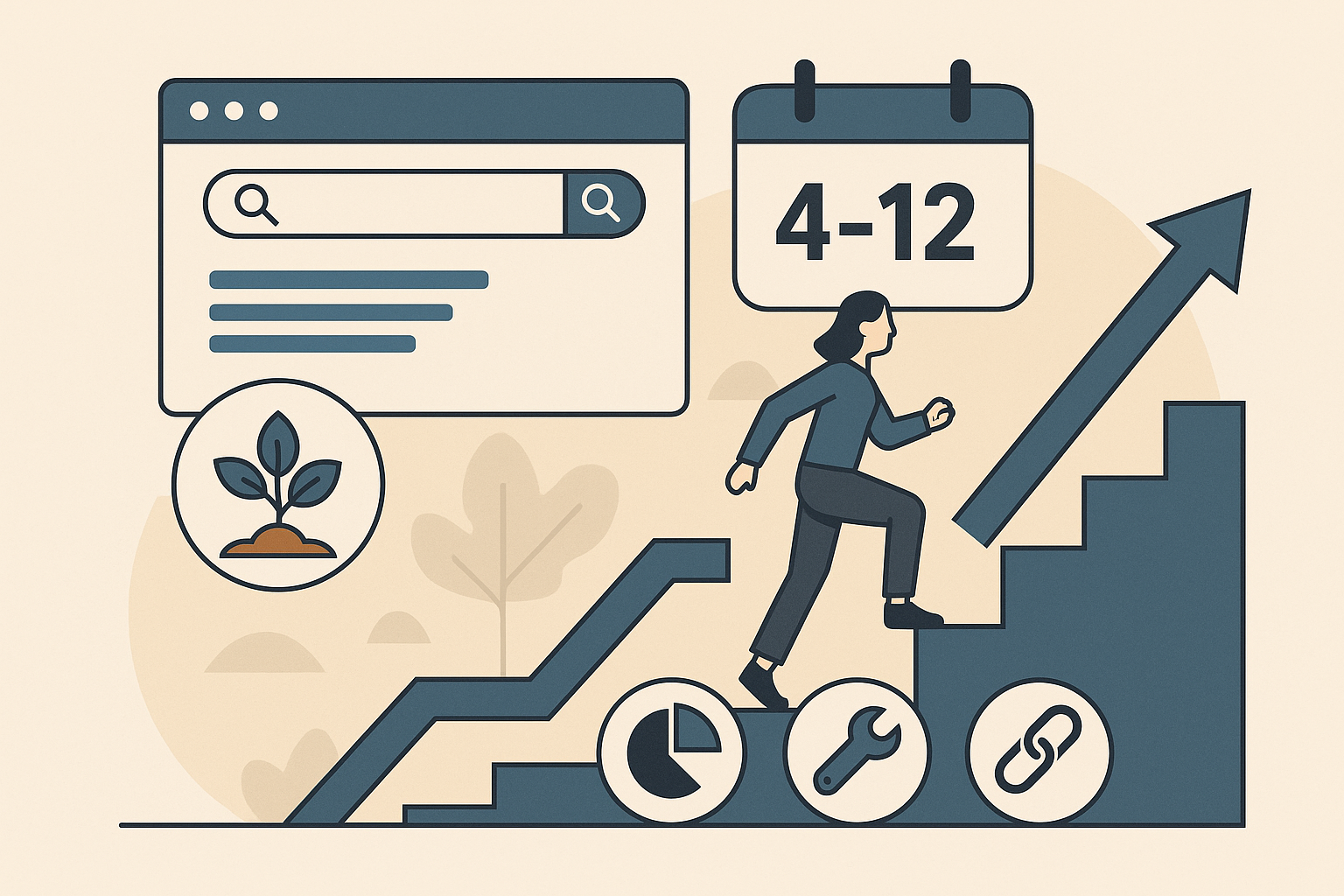 Realistische Zeitrahmen liegen bei 4-12 Monaten für signifikante Verbesserungen. Konsistenz bleibt der Schlüssel zum Ranking-Erfolg.